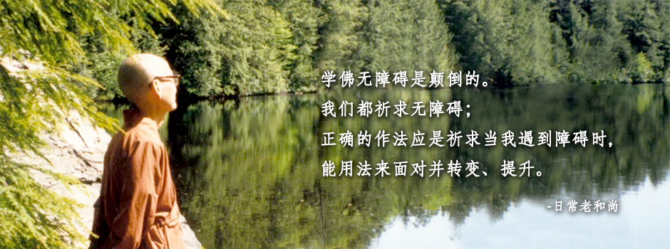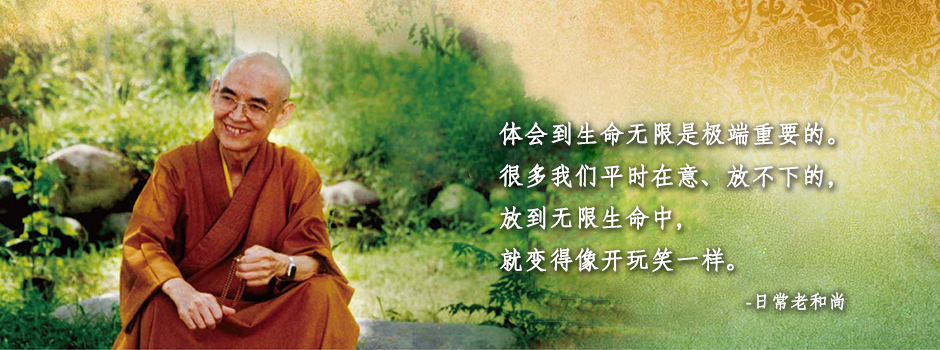 日常老和尚,西元1929年出生於清净纯樸的江苏省崇明县,从小父亲即教导他背诵四书五经,并鼓励他出家利益众生。西元1947年随叔父来台,尔後毕业於台湾台南工学院土木系(成功大学前身)。